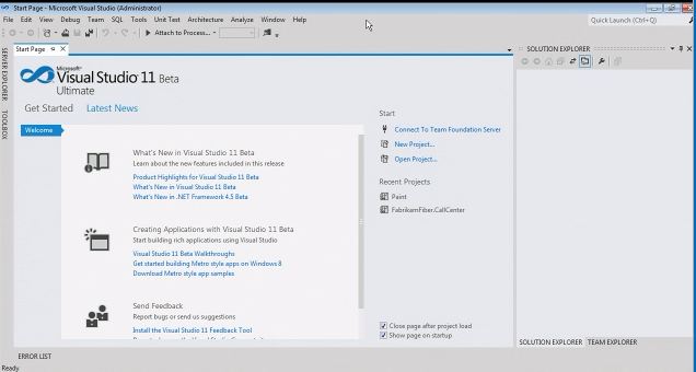 微软Visual Studio 11和.NET Framework 4.5的Beta版已经发布,当然是伴随在Windows 8 客户预览版的发布而发布,Visual Studio 11的一个重要改进就是在用户界面中减少了对色彩的应用,用户可以选择灰色、暗色等外观。另外,用户界面还精简了工具栏指令。