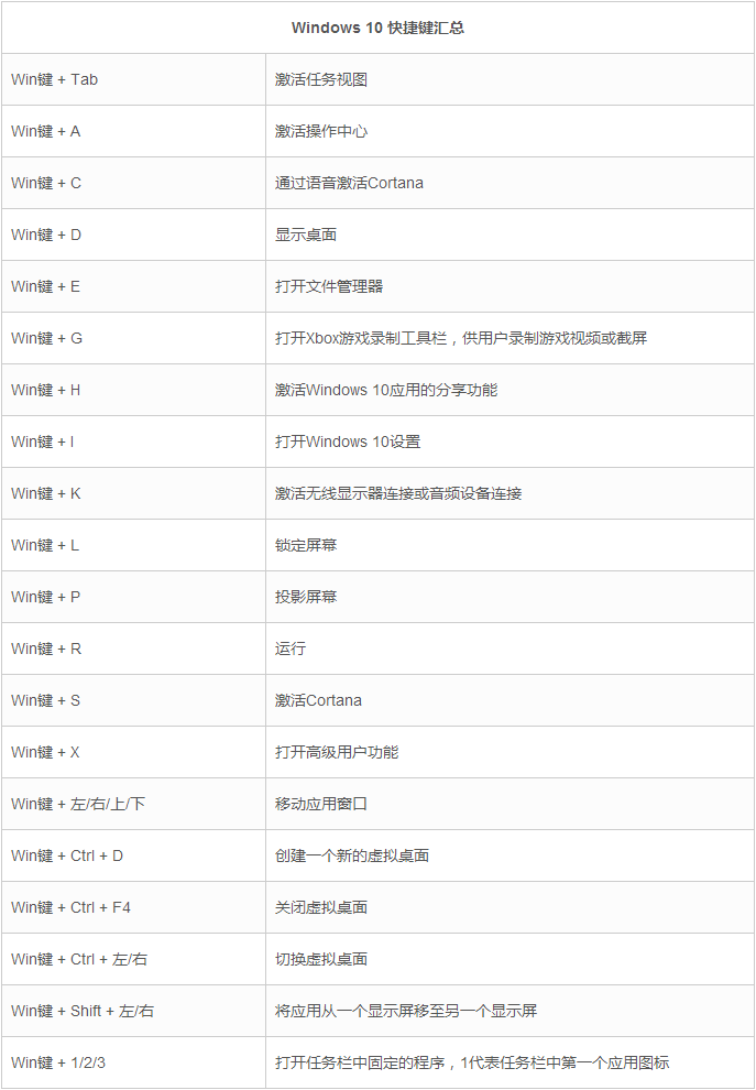 Win10发布已经有段时间了,越大了越来越对新事物不太关心了,也没心情去研究win10到底有哪些新鲜好玩的,无意中发现这个快捷键汇总,分享下吧。