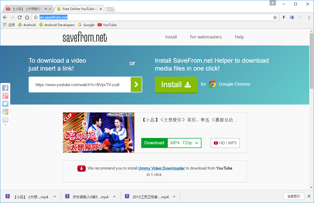 2、打开网站:http://en.savefrom.net/ ,复制Youtube视频地址即可下载。