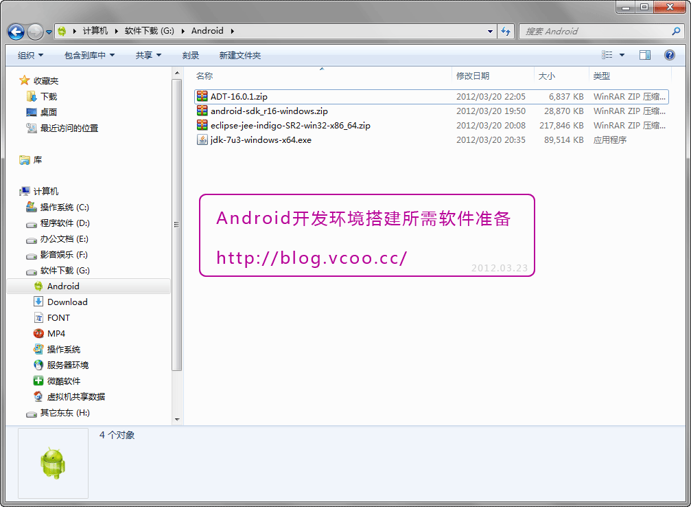 本文第一版写于2012年3月,不知不觉现在已经是2013年10月了,时间过的真快,最近又拿起了教程打算再继续研究Android开发,目标不是很高能做出个小小应用平时用就OK了,不管是Android SDK还是Eclipse IDE更新也快,之前写此文时Android才2.3,现在已经到4.3了,于是决定把文章更新下。