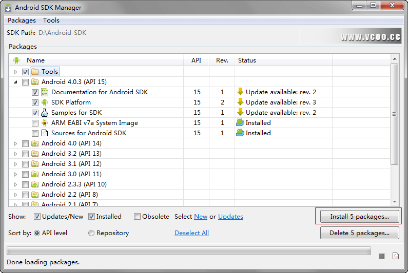 3、运行SDK Manager.exe 选择需要的版本下载