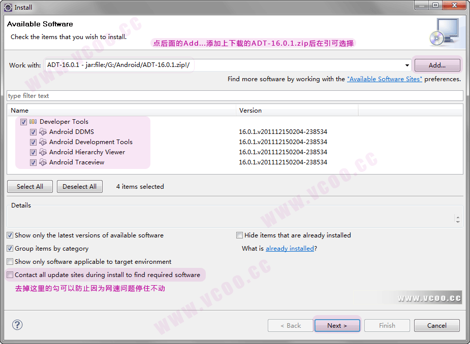 5、如果第3步因为网速慢安装不爽,可以在第2步时的网址替换为刚开始时下载的离线ADT文件。