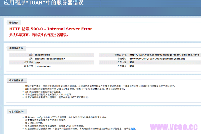 微酷在本地测试最土团购后台功能时遇到上传图片出错:HTTP错误 500.0 – Internal Server Error,很郁闷的问题。@VCOO