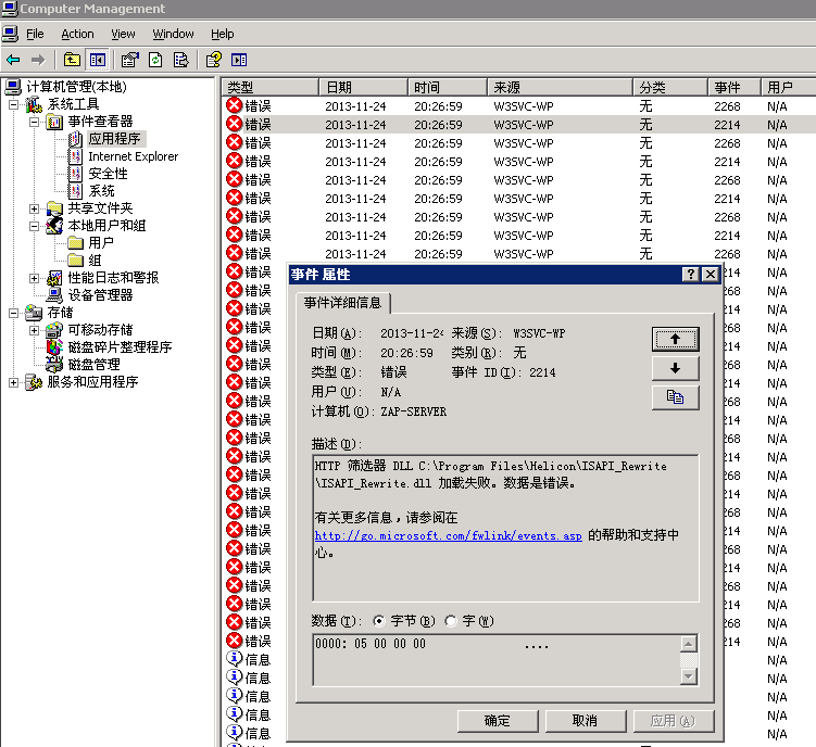 最近又出现这个错误了,查看系统日志可以看到是因为Rewrite组件无法加载造成的。