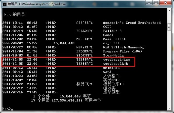 如果目录中有两个文件夹分别名为:testbaosijian和testbabababa,那其中一个短文件名就是testba~1,另一个是testba~2,以此类推,如下图