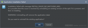 Android Studio 用模拟器调试 Android 应用时报错如下:Installation failed with message INSTALL_FAILED_NO_MATCHING_ABIS。这个错误是由于使用了Native Libraries,而该Libraries不支持当前的CPU的体系结构。现在安卓模拟器的CPU/ABI一般有三种类型:INTEL X86,ARM,MIPS,如果选择用INTEL X86出现INSTALL_FAILED_NO_MATCHING_ABIS的错误,那就改用ARM的或者用真机部署。